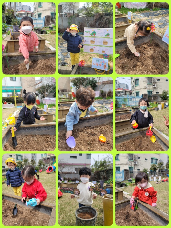 씨씨씨를 뿌리고 꼭꼭 물을주었죠~~ 우리 사랑반 친구들이 씨를 뿌리고 물을 주었답니다~♡