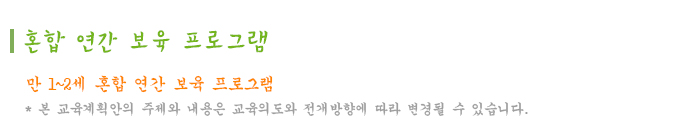 ⋅[예절]엄마와 인사를 나눠요 ⋅[질서]놀잇감이 있는자리를 알아요 ⋅[인성]선생님 품에 안겨보아요 ⋅[청결]선생님과 손을 씻어보아요 ⋅[자조]숟가락으로 먹어보아요 |