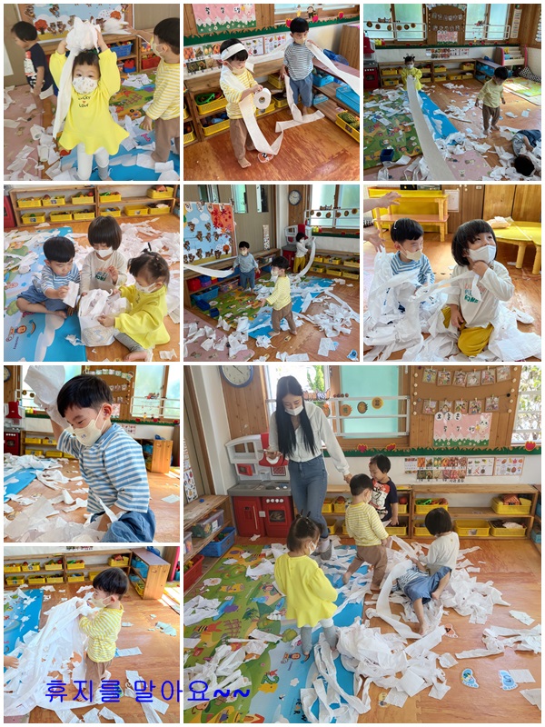 휴지를 풀었다 감아보아요