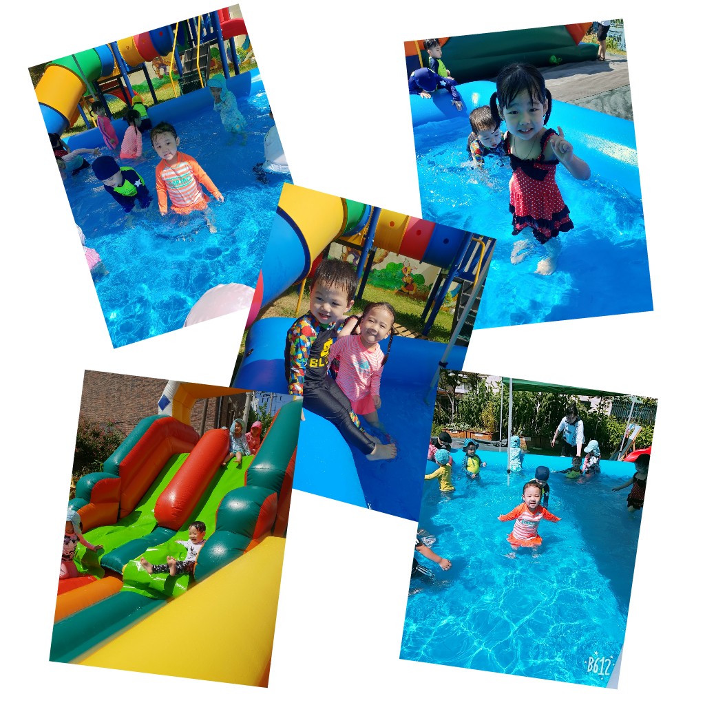 오늘은 무더운 여름을 시원하게 보낼 물놀이를 신나게 하였답니다^^ 아이스크림도 먹고 팝콘도 먹으며 친구들과 신나게 물장구치니 시간 가는 줄 모르고 교실에 들어가는 시간이 아쉬울 정도로 너무나 행복한 시간이 되었어요 ^^
