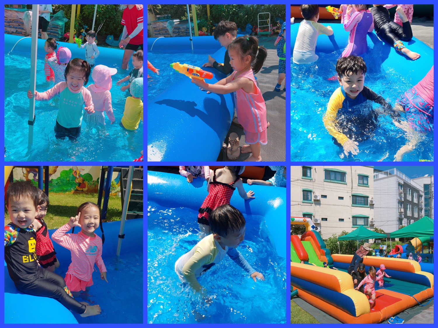 수영장에 풍덩~ 선생님 손잡고 계단을 올라가 미끄럼틀도 타고