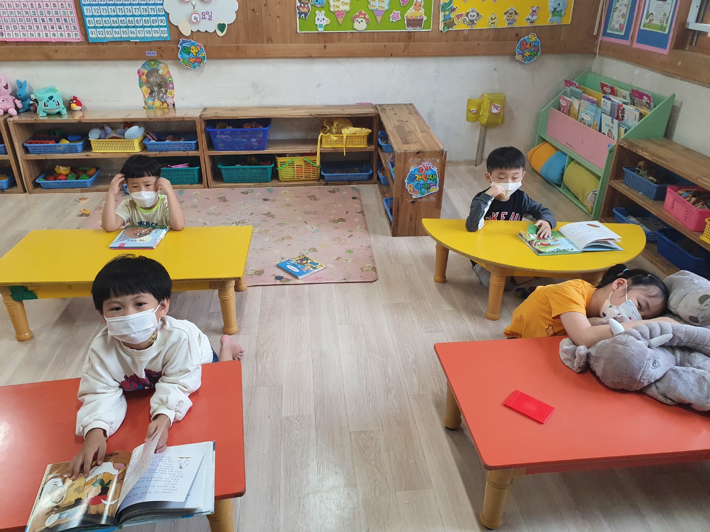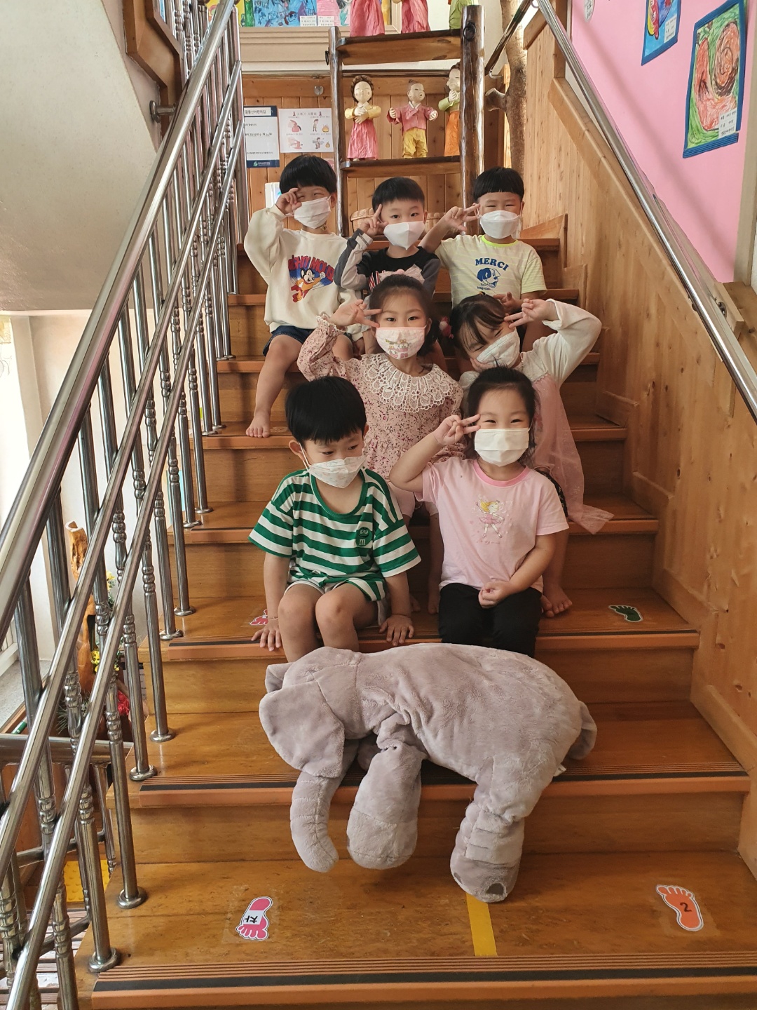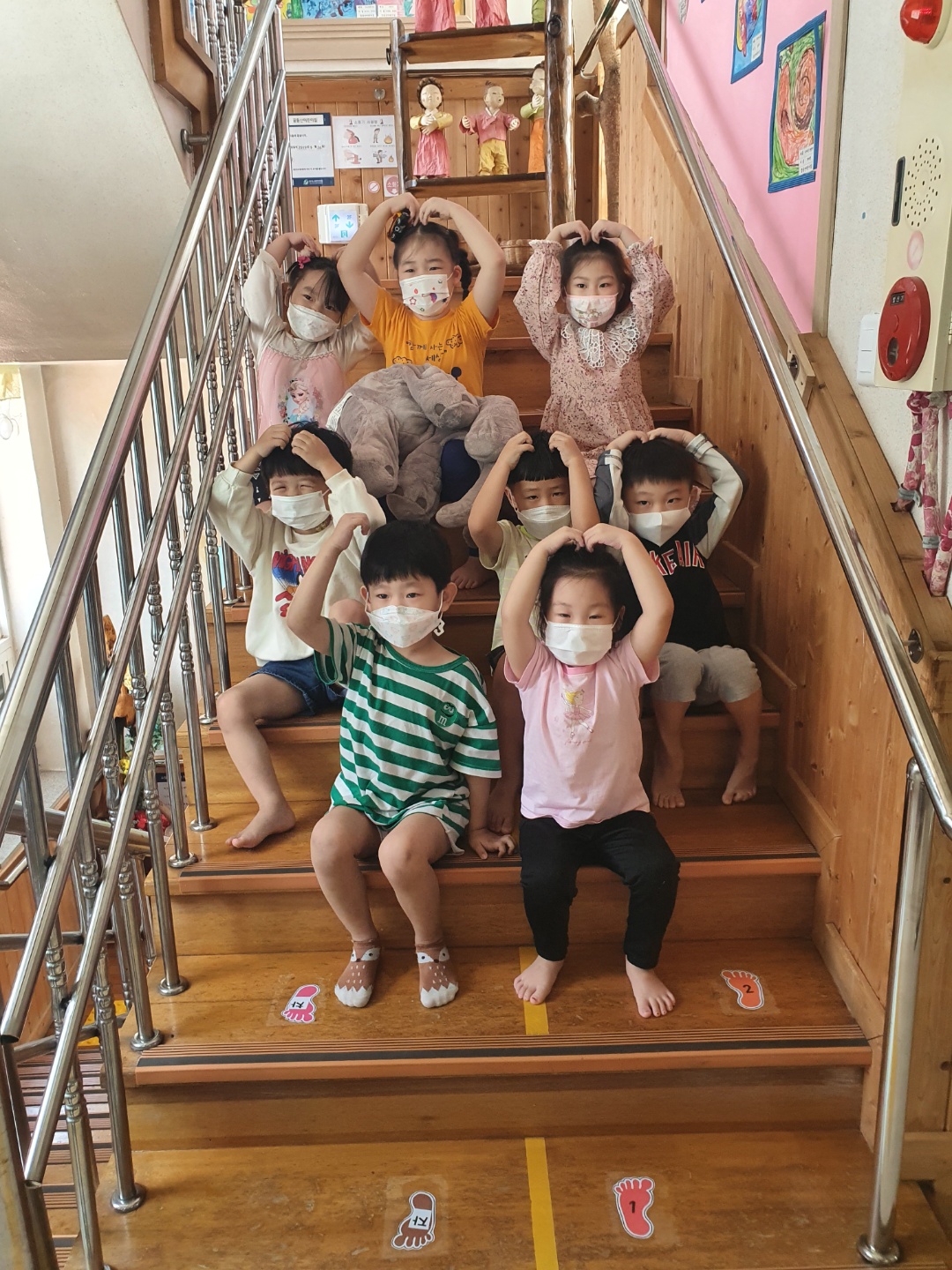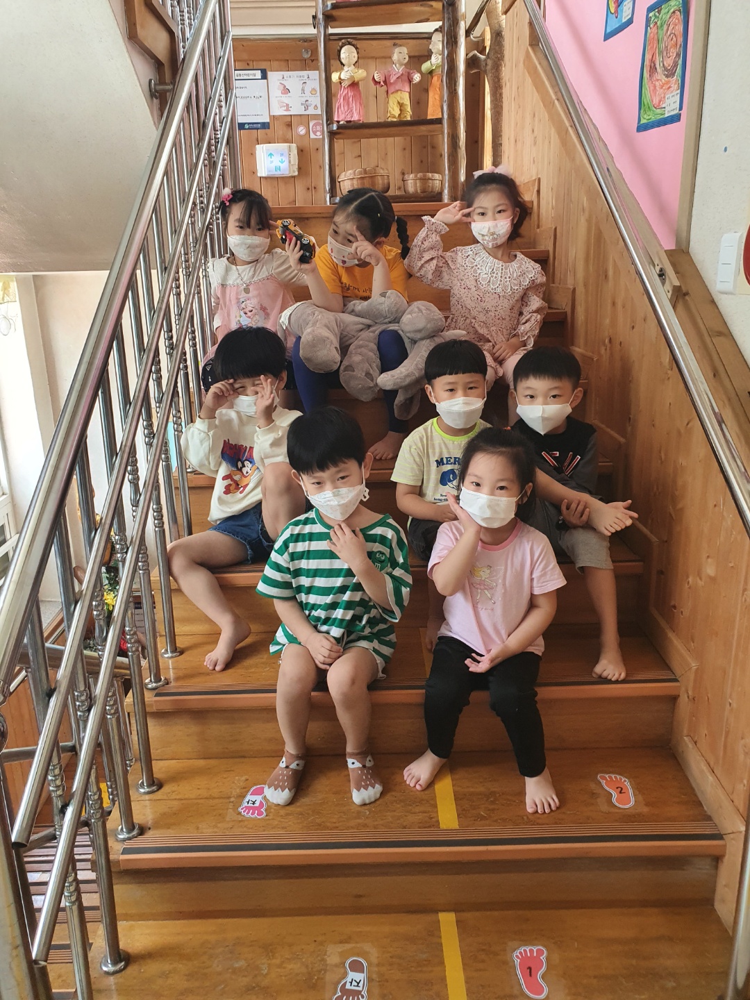 친구들과 함께 마스크를 쓰고 거리두기를 하고, 단체 사진도 찍어보았어요.