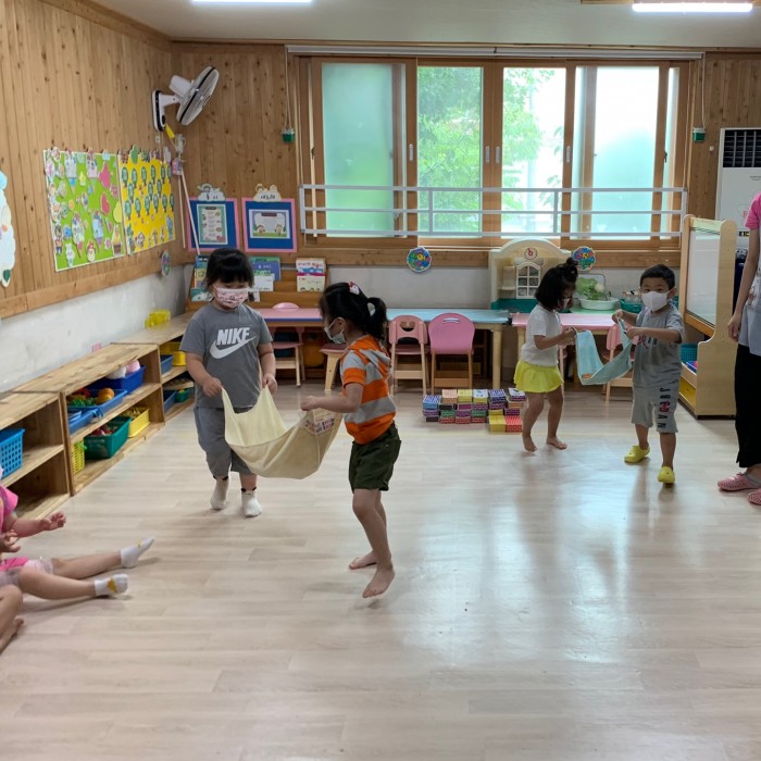 장마를 대비해요 라는 게임을 진행했습니다. 두 팀을 나눠 둑을 쌓아보았어요~