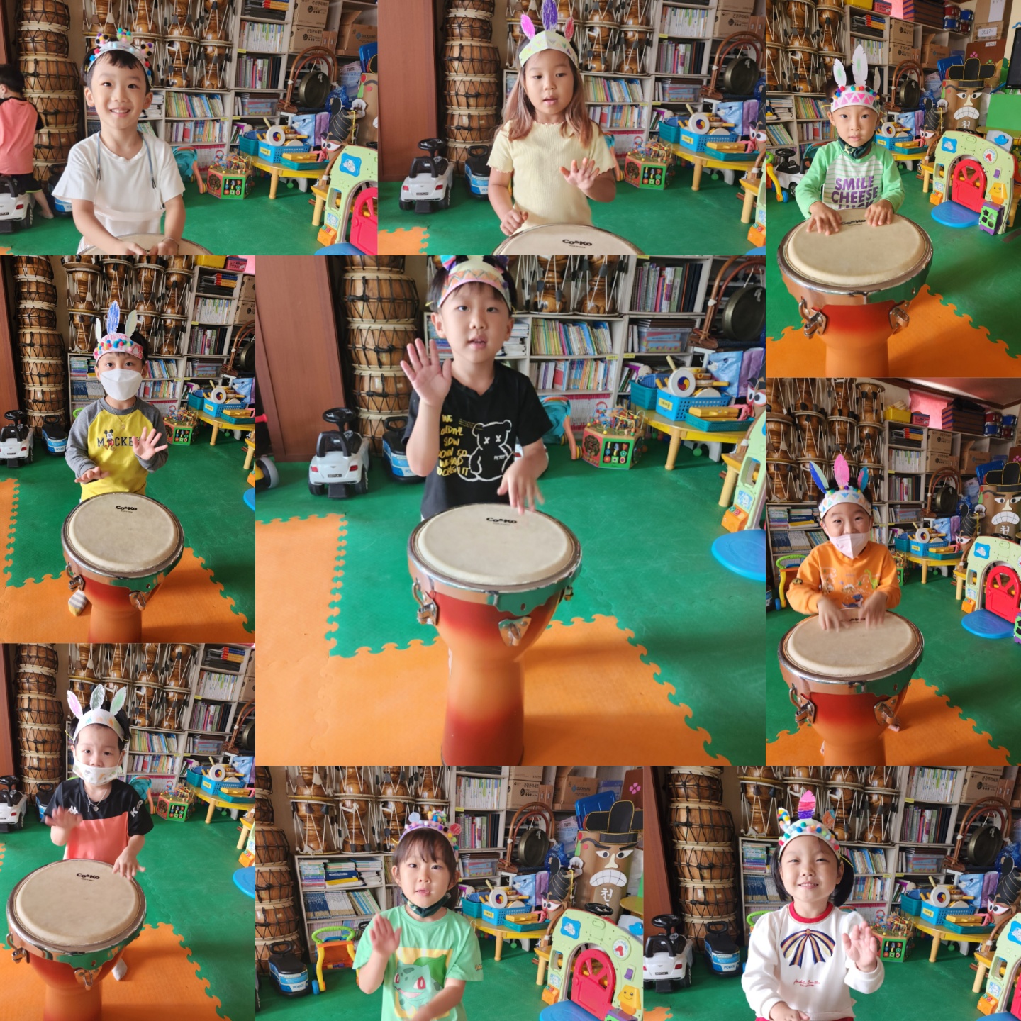 세계여러 나라중 인디언에 대해 알아보고 인디언 머리띠를 만들어 인디언 흉내도 내보며 잼베 악기를 두들겨 보아요