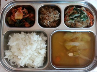 <오늘의 메뉴 : 흰쌀밥, 미소된장국, 김치, 멸치볶음, 잡채>