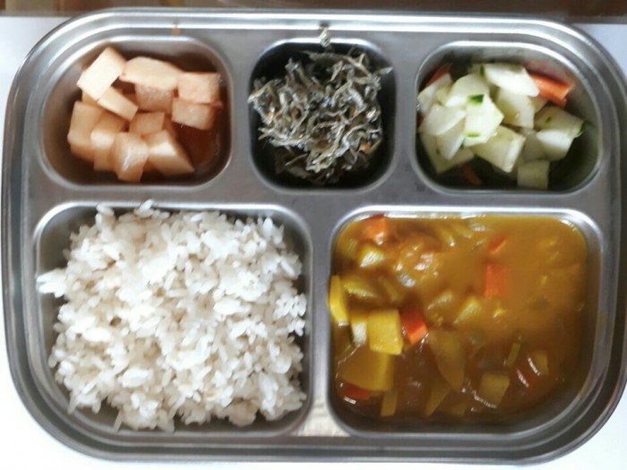 오늘의 메뉴 : 카레라이스, 오이무침, 김치
