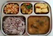 오늘의 메뉴 : 검정쌀밥, 감자된장국, 야채계란말이, 오이무침, 깍두기