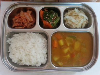 오늘의 메뉴 : 카레라이스, 감자볶음, 겉절이, 배추김치