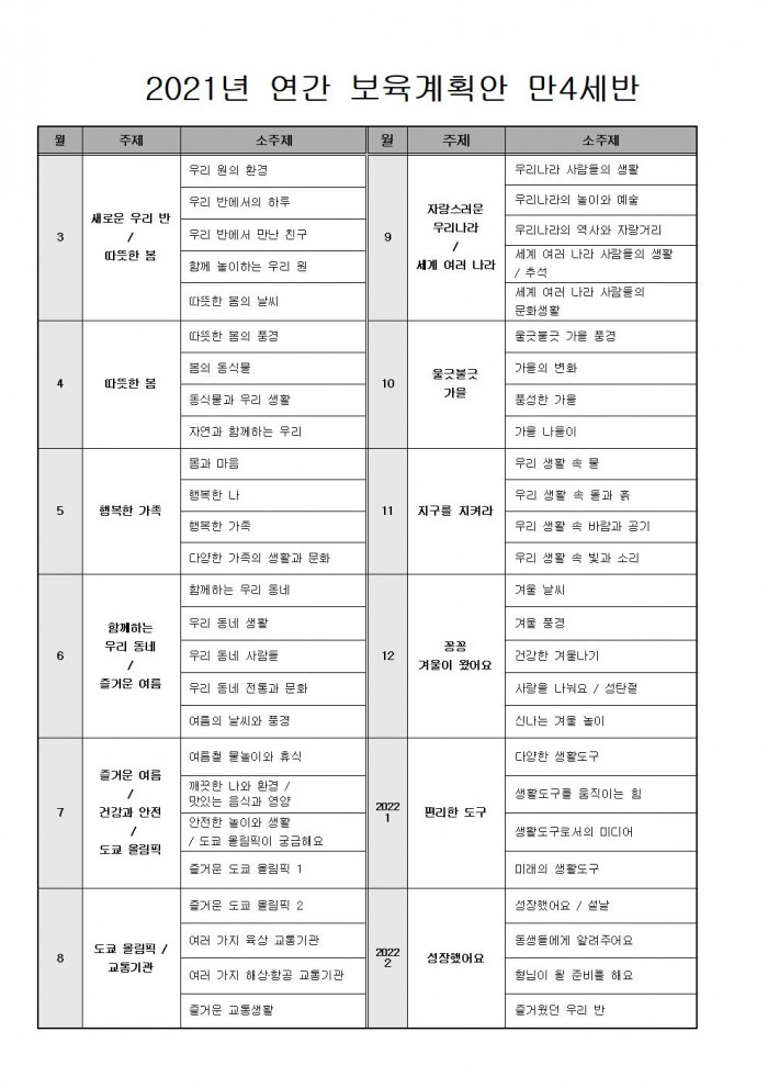 2021년 연간 보육계획안 만 4세반입니다