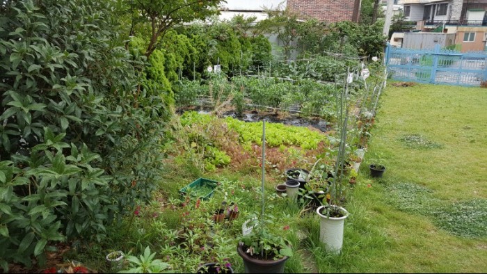 상추 2종, 고추, 가지, 수박, 고구마, 토마토 가 심어져있습니다.