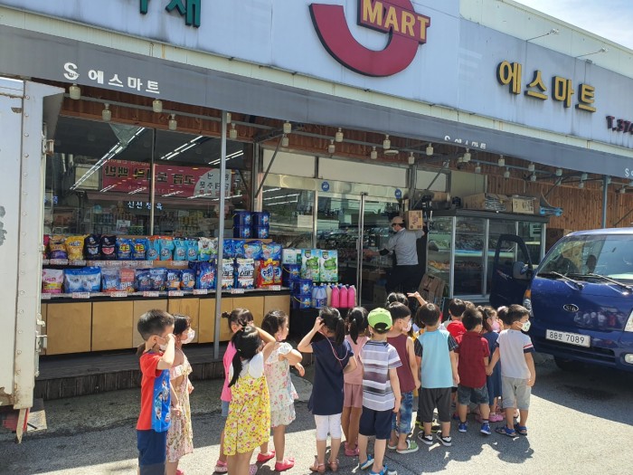 울친구들과 경로당->정비소->s마트->어린이집 동네길찾기를 안전하게 잘 다녀왔답니다