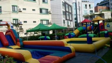 물놀이기구(워터슬라이드, 풀장등)를 설치하여